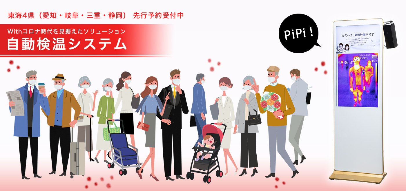 デジタルサイネージ部分で検温を実施しているというアナウンスを流すことができます。