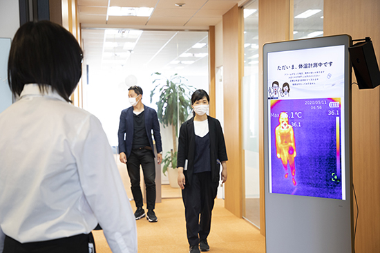 - 通用口に設置し、従業員様を対象とした検温を実施。